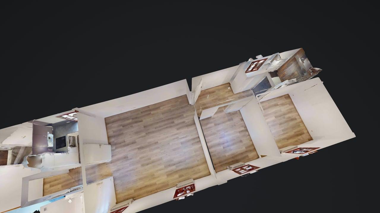 Die Wohnung ist 65 m² groß und befindet sich im Innenhof im 2. Obergeschoss. Sie wird über den Arkadengang begangen. 2024 wurde die Wohnung grundlegend saniert. Bad und WC sind dabei neu installiert worden. Die Wohnung wurde mit Vinylboden durchgängig ausgelegt. Eine Küche wurde eingebaut. An die Küche schließt eine kleine Vorratskammer an. Anschließend betritt man das Wohnzimmer. Durch einen kleinen Zwischengang kommt man ins Bad und WC, sowie zu 2 Zimmer die als Schlafzimmer, Kinderzimmer entsprechend genutzt werden können. Der Zwischenraum bietet Platz für einen große Schrank. Alle Räume haben Fenster in die beidseits gelegenen ruhigen Innenhöfe.